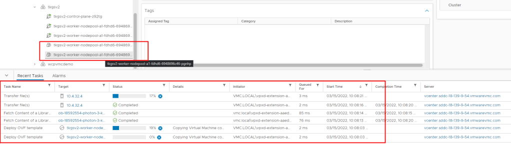 you can also view vCenter activities about creation of Tanzu Kubernetes cluster.