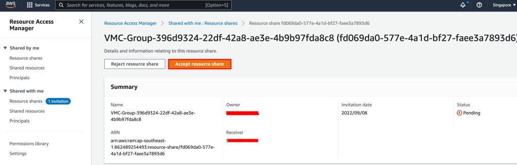 Now it’s time for you to go back to the AWS console and sign in to the same AWS account where you will create Amazon FSx file system. Here navigate to the Resource Access Manager service page and