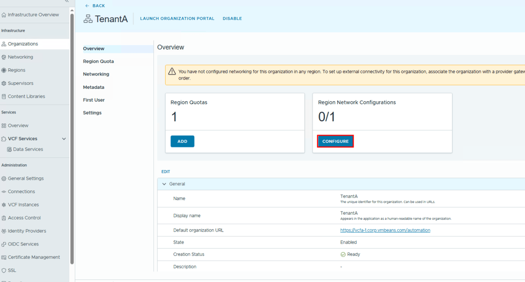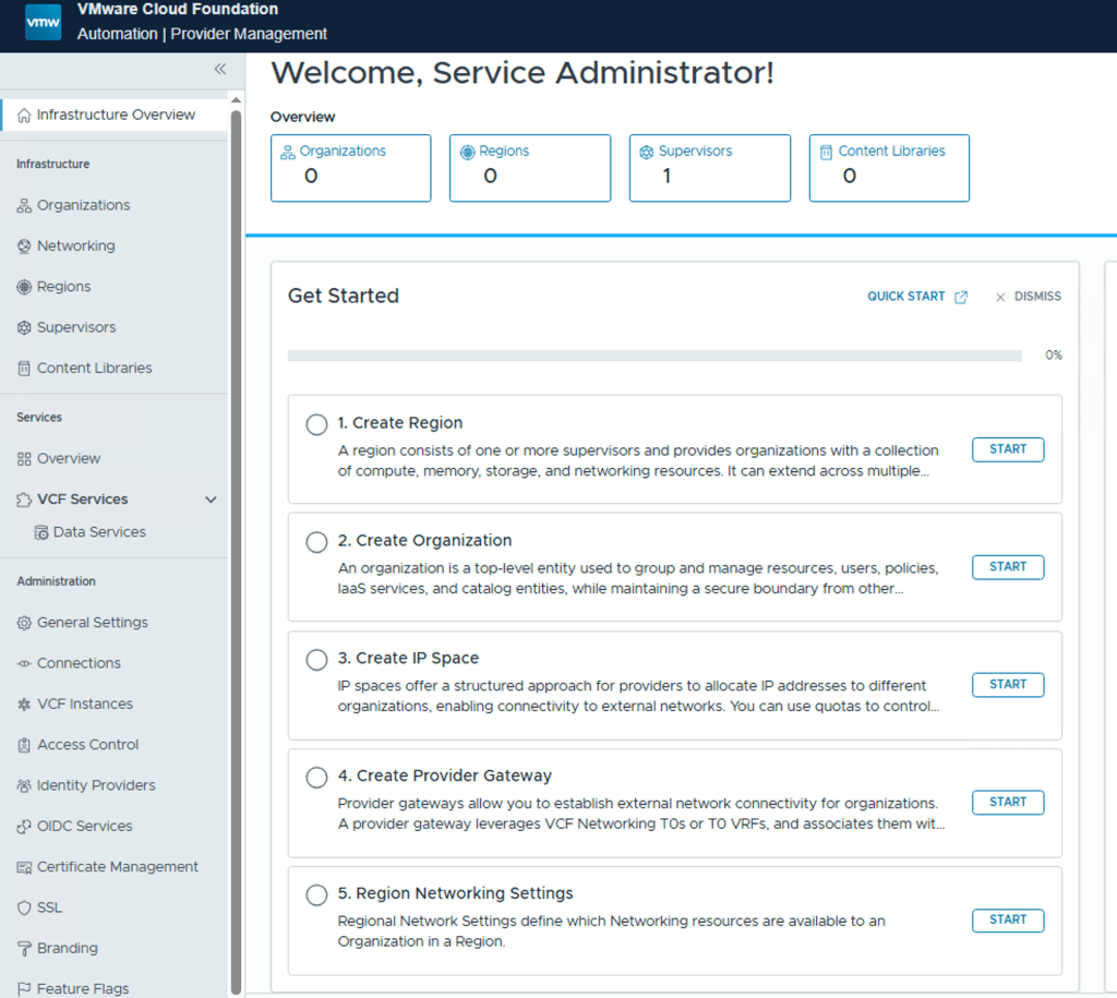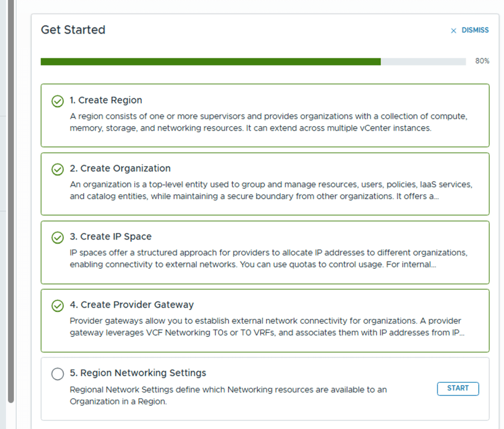 Alternatively, you can use the manual wizard in VCF Automation to set up each component individually—Region, Organization, IP Space, Provider Gateway, and Tenant Networking—giving you full control and customization over your environment. In this blog post, I’ll walk you through that step-by-step process to help you understand how to configure a tenant from the ground up.