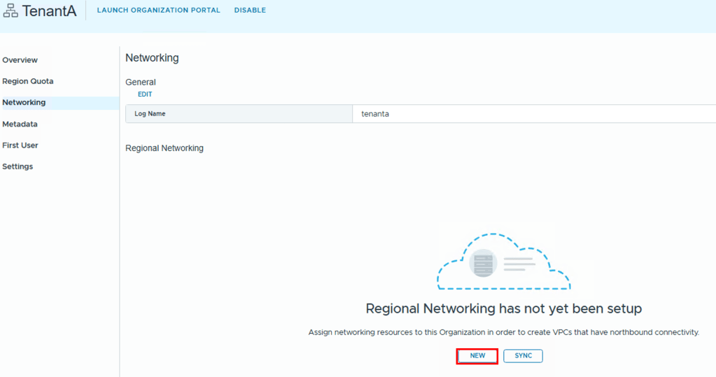 Region Network Settings (Tenant Networking)