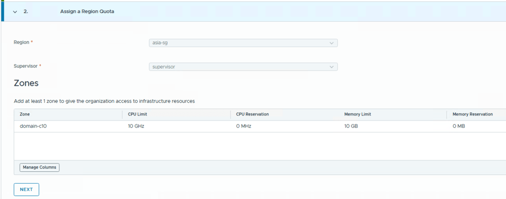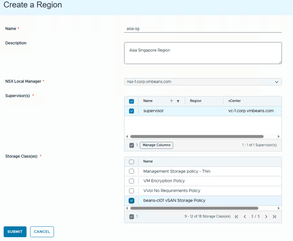 Supervisor(s) – Inside a Region we have one or more Supervisors and provides compute infrastructure for the region, list shows all available Supervisors for NSX Manager instance that you choose in above step.
