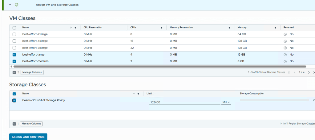 - Assign VM classes and storage classes